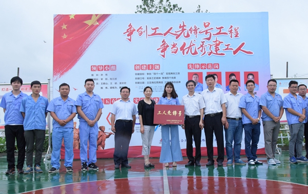 8月12日下午,集團(tuán)公司工會副主席吳曉伍、女工委主任胡愛紅一行蒞臨公司阜陽北路高架1標(biāo)項目,驗收“工人先鋒號”創(chuàng)建工作并授牌。