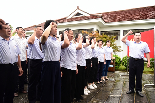 下午,在李克農(nóng)故居,錢總帶領全體黨員重溫了入黨誓詞。在渡江戰(zhàn)役紀念館,一件件陳列的歷史文獻,一幅幅革命烈士的照片,一個個感人至深的革命故事,一段段珍貴的影像資料,讓全體黨員重回到那段跌宕起伏、波瀾壯闊的革命歲月,親身感受中國共產(chǎn)黨艱苦卓絕的奮斗史和輝煌歷程,接受了一次黨史黨性教育和精神洗禮。