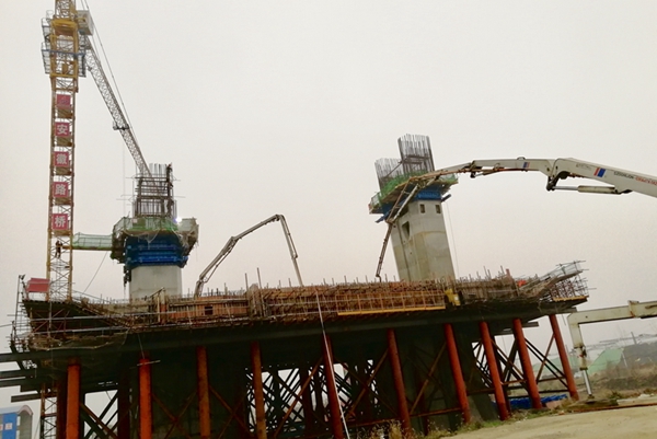 12月1日下午,裕溪河特大橋東岸13號(hào)主墩開始0#塊混凝土澆筑施工。