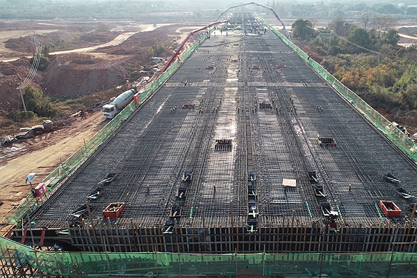 為確保產(chǎn)值如期完成,項目部細化節(jié)點目標,層層壓實責任,人人簽訂責任狀。為順利完成預(yù)應(yīng)力混凝土箱梁連續(xù)澆筑,施工管理人員晝夜輪換,從便道修整、泵車就位、交通疏導(dǎo)及后場混凝土車輛調(diào)度,到混凝土澆筑前的最后檢查,項目部明確分工,各司其職,為打贏勞動競賽攻堅戰(zhàn)而合力奮戰(zhàn)。