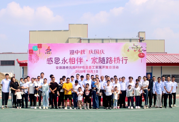 今年的中秋喜逢國慶,家與國撞了滿懷。在舉國歡慶、萬家團圓的欣喜時刻,仍有很多路橋人為了工程建設(shè),舍小家、為大家,堅守崗位、奮戰(zhàn)一線。為進一步深化公司“家文化”建設(shè),10月1日,鳳陽PPP項目黨支部精心組織開展了“感恩永相伴•家隨路橋行”員工家屬日活動,20余名員工家屬受邀到項目部與家人團聚,共慶佳節(jié)。