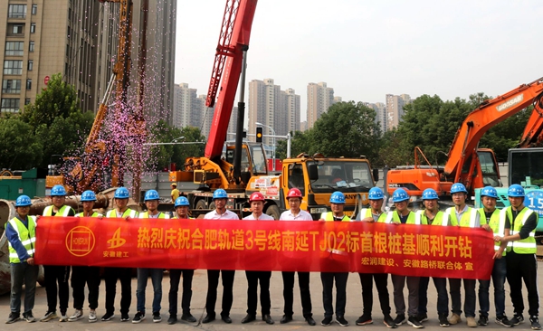 開局就是決戰(zhàn)、起步就是沖刺。2020年9月29日,項目僅用不到半個月的時間完成各項準(zhǔn)備工作,在合肥軌道2、3號線延長線全線率先開鉆首樁樁基,比預(yù)定時間提前一個月。項目部錨定節(jié)點工期,自我加壓,加強管理、科學(xué)調(diào)度,積極細(xì)化施工組織,制定每日施工任務(wù)清單,增加機械設(shè)備投入,全面掀起勞動競賽大干熱潮。針對地質(zhì)特點,引進(jìn)400大功率旋挖鉆機并改良鉆頭為螺旋鉆頭,提高了設(shè)備使用率和人員勞動生產(chǎn)率。暢通施工各方溝通渠道,積極征集合理化建議,凝聚各方智慧努力加快施工進(jìn)度。