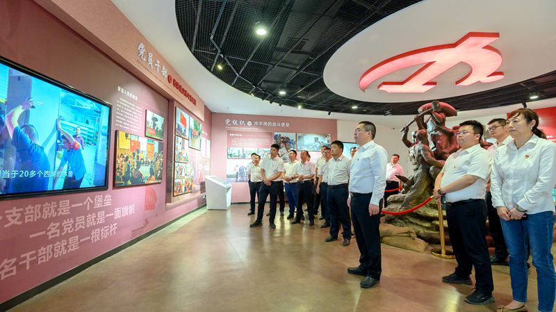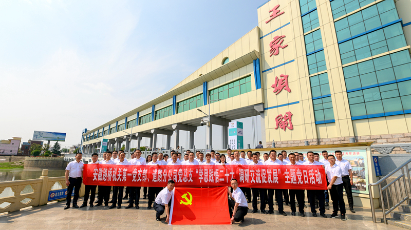 在調(diào)研交流環(huán)節(jié),全體人員先后參觀了項(xiàng)目預(yù)制梁場(chǎng)、阜南南互通施工現(xiàn)場(chǎng),實(shí)地查看了項(xiàng)目標(biāo)準(zhǔn)化建設(shè)、安全文明施工和技術(shù)工藝運(yùn)用情況,并在項(xiàng)目會(huì)議室圍繞推動(dòng)黨建生產(chǎn)深度融合、加強(qiáng)人才隊(duì)伍建設(shè)和深化項(xiàng)目基礎(chǔ)管理等方面開展了座談交流。在參觀踐學(xué)環(huán)節(jié),全體人員來到被稱為“千里淮河第一閘”的王家壩閘,重溫習(xí)近平總書記考察安徽重要講話指示精神。在講解員的帶領(lǐng)下,大家通過觀看《王家壩紀(jì)錄片》和參觀王家壩抗洪紀(jì)念館內(nèi)的7個(gè)展廳,全面了解蒙洼群眾的抗洪歷史,深入領(lǐng)會(huì)王家壩精神的豐富內(nèi)涵。