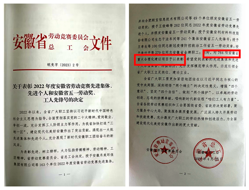 近日,安徽省總工會(huì)2022年度重大合理化建議評(píng)選活動(dòng)結(jié)果公布,公司43項(xiàng)成果獲省重大合理化建議,為公司五年來(lái)獲此榮譽(yù)之和,是安徽建工集團(tuán)2022年度獲省級(jí)合理化建議最多的二級(jí)單位。