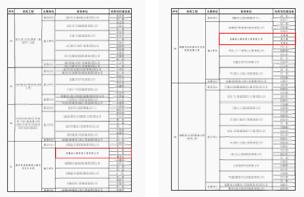 近日,中國公路建設行業(yè)協(xié)會公布2022~2023年度(第二批)公路交通優(yōu)質工程獎(李春獎)名單,公司參建的滁州至淮南高速公路定遠至長豐段、銅陵市G347普濟圩至樅陽段改建工程2個項目榜上有名。截至目前,公司已摘得12項“李春獎”。