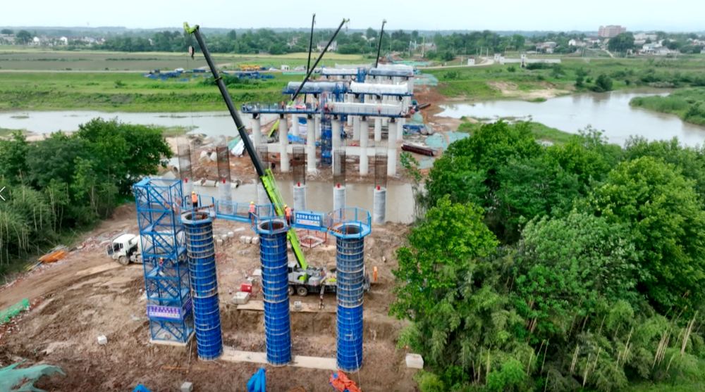 全長3.58公里的皖水河特大橋建設(shè)項目,跨皖水河、梅河、珠流河三條河流,是天天高速全程單體最長的橋梁,主河床上50根樁基要在水位上漲之前完工。為此,施工單位安徽路橋公司抓緊時間,組織全員上崗,在保安全質(zhì)量的基礎(chǔ)上,科學(xué)組織施工,全力推進(jìn)項目建設(shè)。S22天天高速YQB2標(biāo)項目黨支部書記李靖介紹說,為搶抓施工黃金期,我們共投入一線作業(yè)人員200余人,大型施工機(jī)械30臺套,24小時施工不停歇,拉滿進(jìn)度條,實(shí)現(xiàn)加速跑,確保項目早日建成通車。