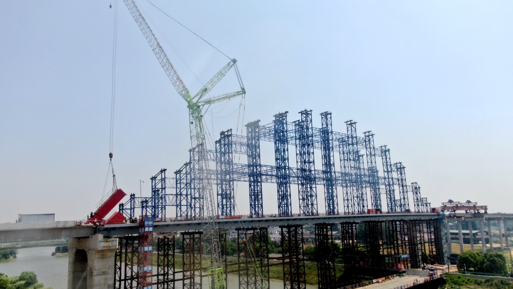 【路橋“競”行時(shí)】白湖大橋項(xiàng)目首段鋼箱拱順利吊裝