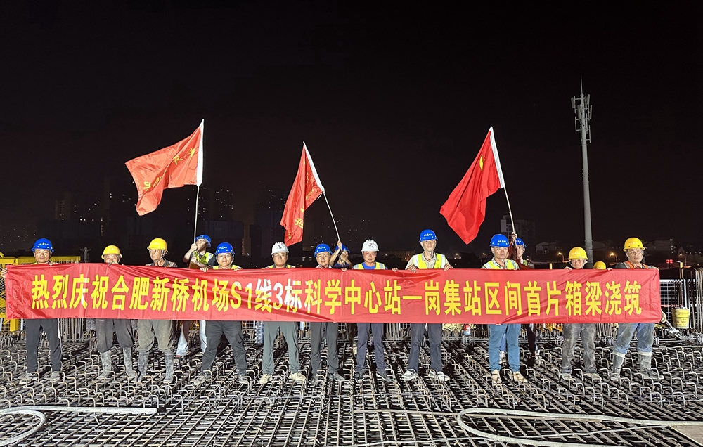 【路橋“競”行時】合肥新橋機場S1線3標(biāo)科學(xué)中心站-崗集站區(qū)間首跨箱梁完成澆筑