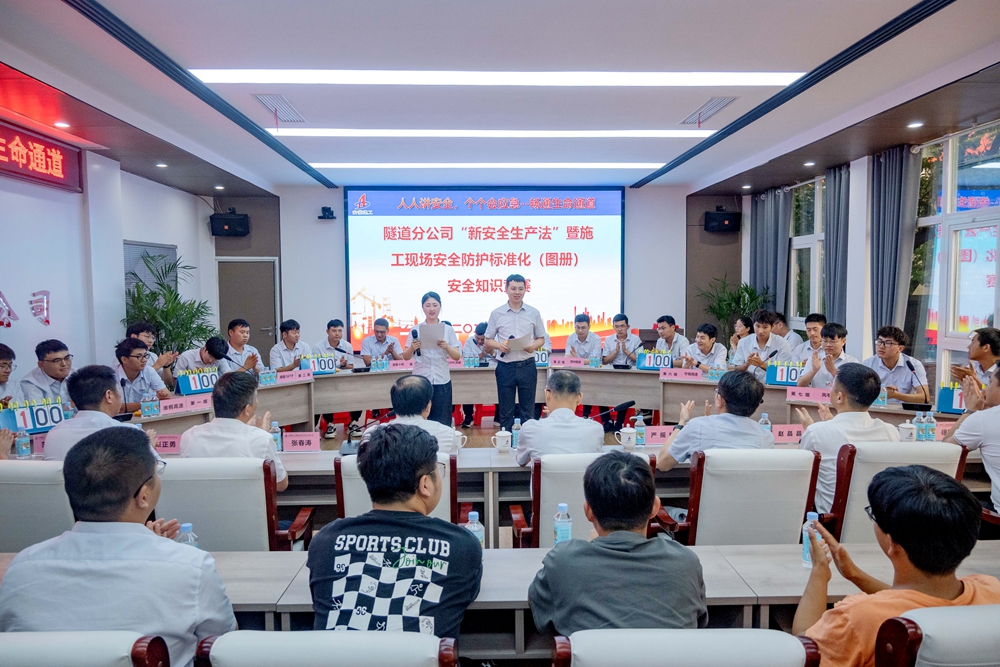 6月29日下午,隧道分公司組織開展“新安全生產(chǎn)法與施工現(xiàn)場安全防護標準化”知識競賽活動。省交通質(zhì)安中心安全生產(chǎn)監(jiān)管處副處長嚴搖鈴,分公司領(lǐng)導班子、機關(guān)各部門負責人、所屬項目經(jīng)理及職工代表現(xiàn)場觀賽。