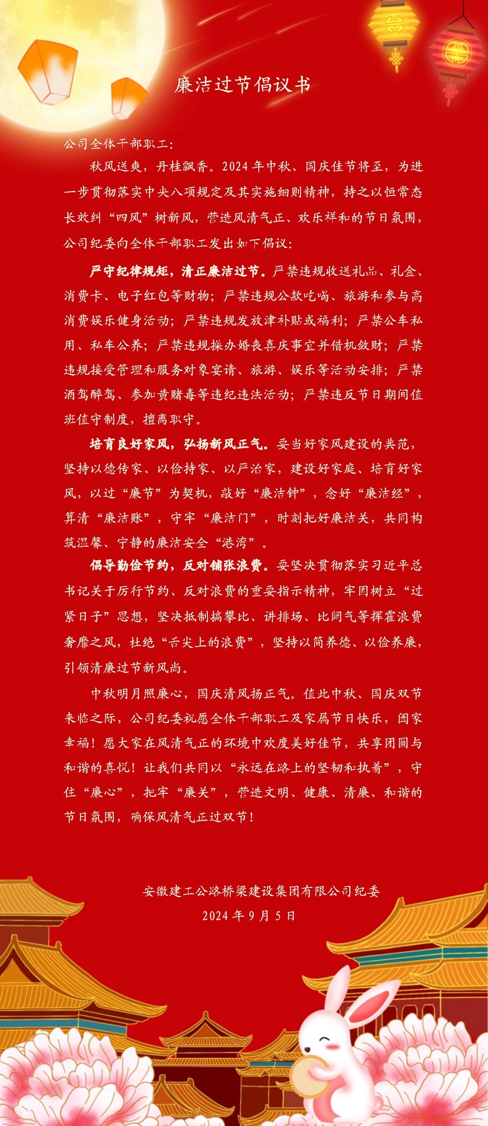 清風(fēng)路橋 | 廉潔過節(jié)倡議書