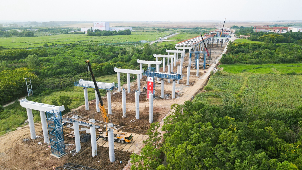 在合肥大外環(huán)西線,淮桐高速合肥段路基2標淠河總干渠大橋、引江濟淮特大橋引橋、大柏互通主線施工現場,300余名詮釋著勞模精神的施工建設者,沖刺工程進度,一心筑造回家的路。
