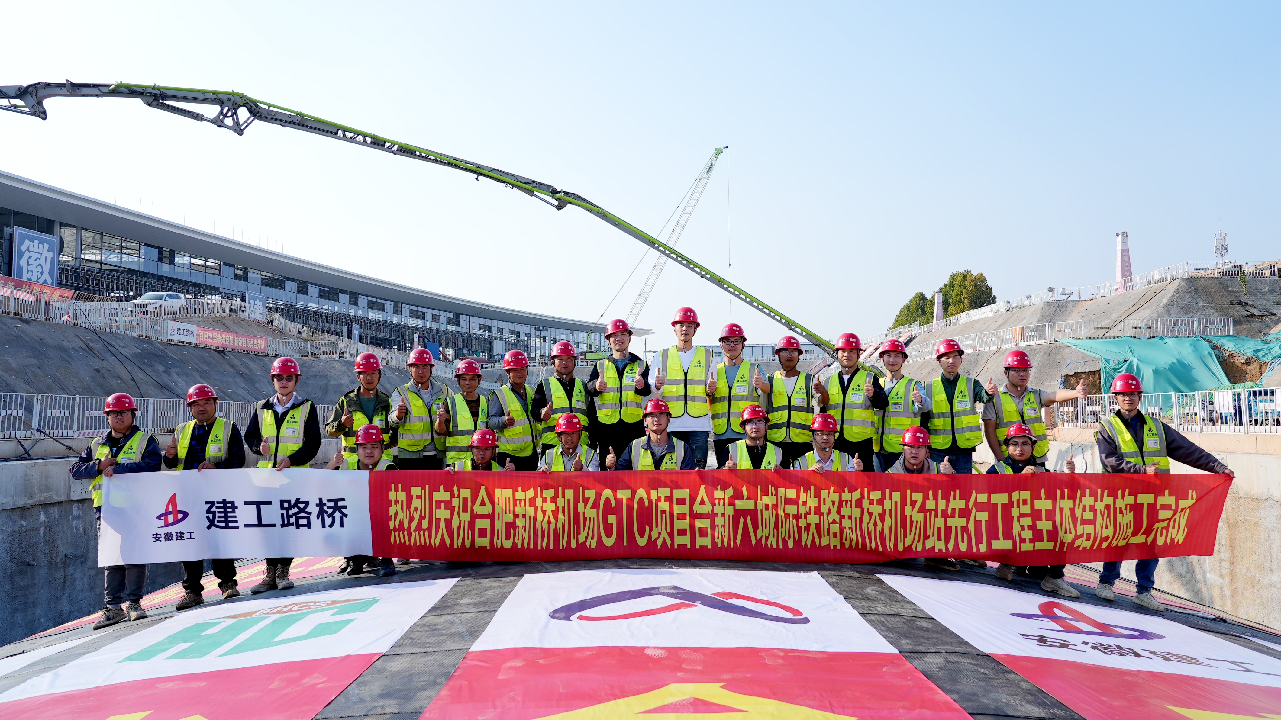 合肥新橋機(jī)場綜合交通中心項(xiàng)目合新六城際鐵路新橋機(jī)場站先行工程順利封頂