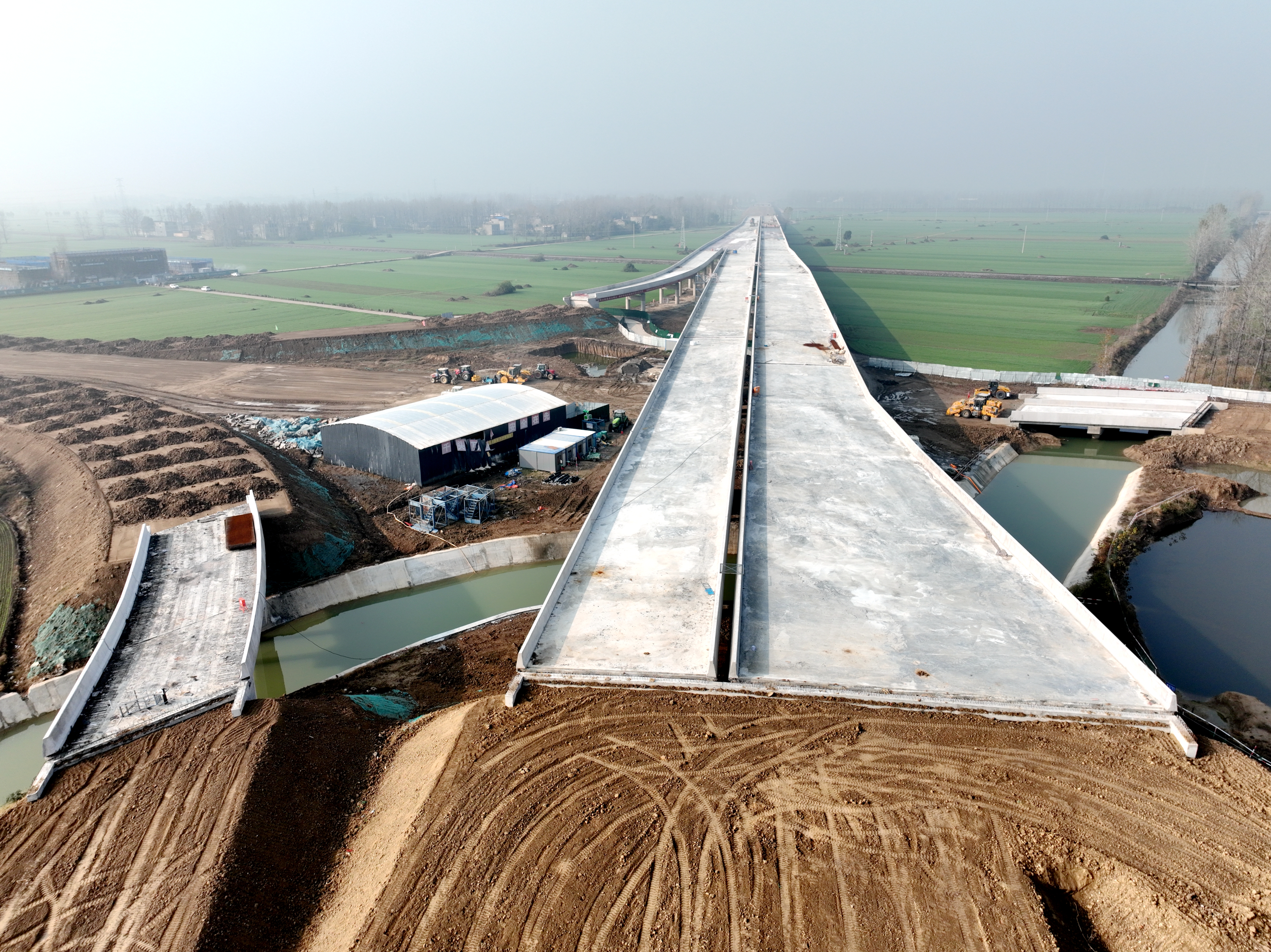【路橋“競”行時】徐淮阜高速亳州段路基02標(biāo)跨淮北礦業(yè)鐵路橋完成橋面鋪裝