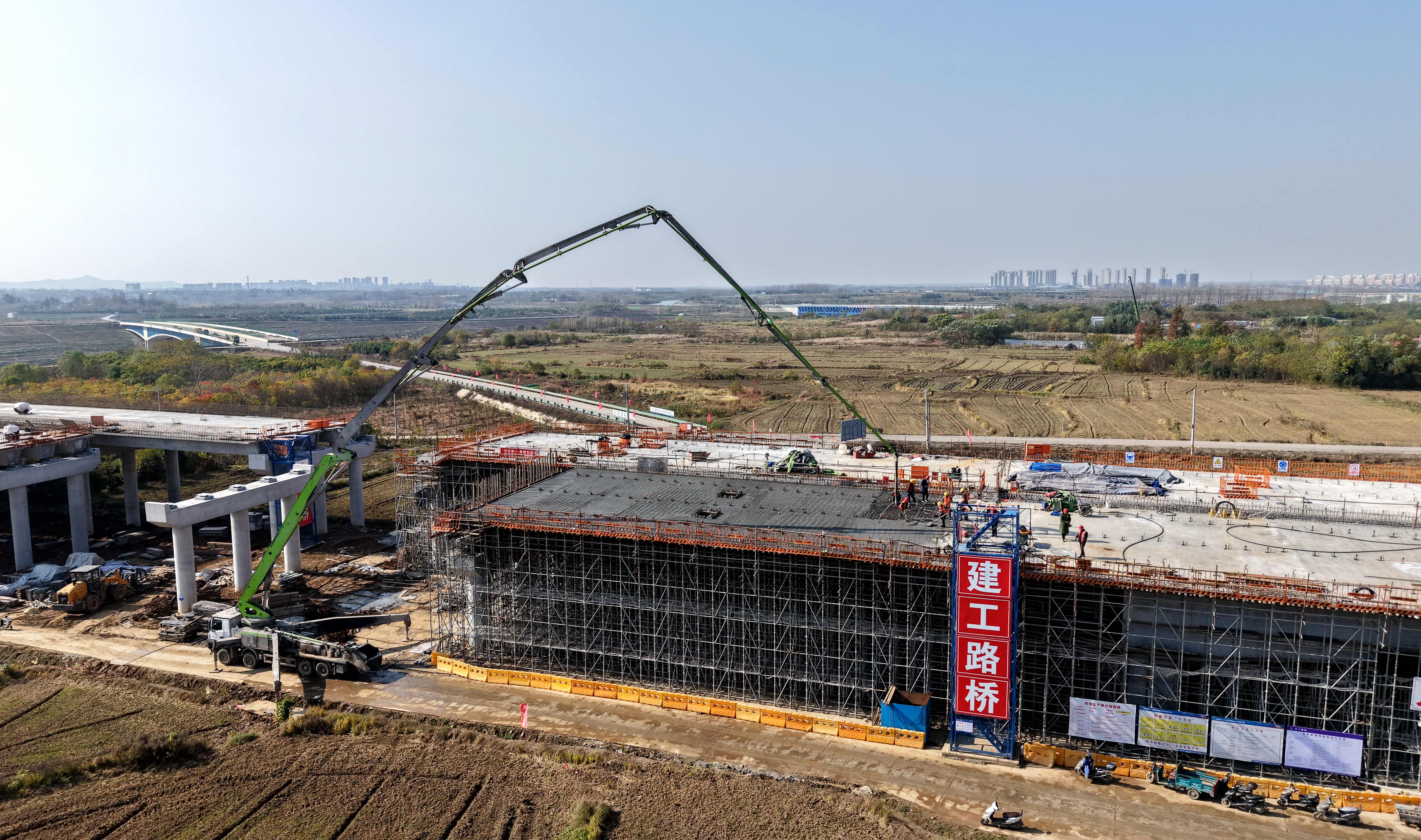 【路橋“競(jìng)”行時(shí)】淮桐高速合肥段路基2標(biāo)引江濟(jì)淮特大橋引橋現(xiàn)澆梁全部澆筑完成