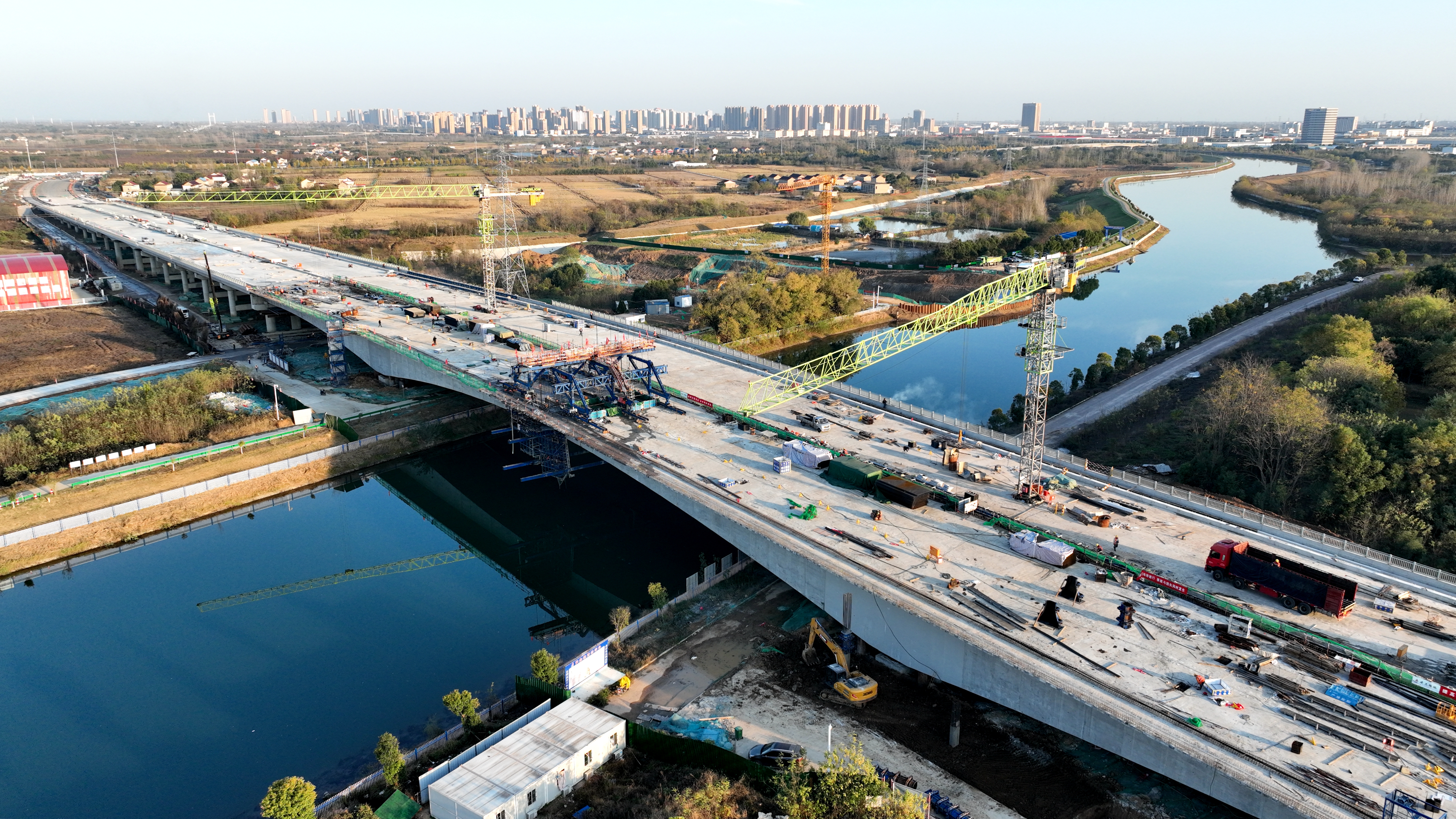 11月29日,許繼慎路EPC項目跨淠河總干渠特大橋順利合龍,標志著大橋主體工程正式完成。