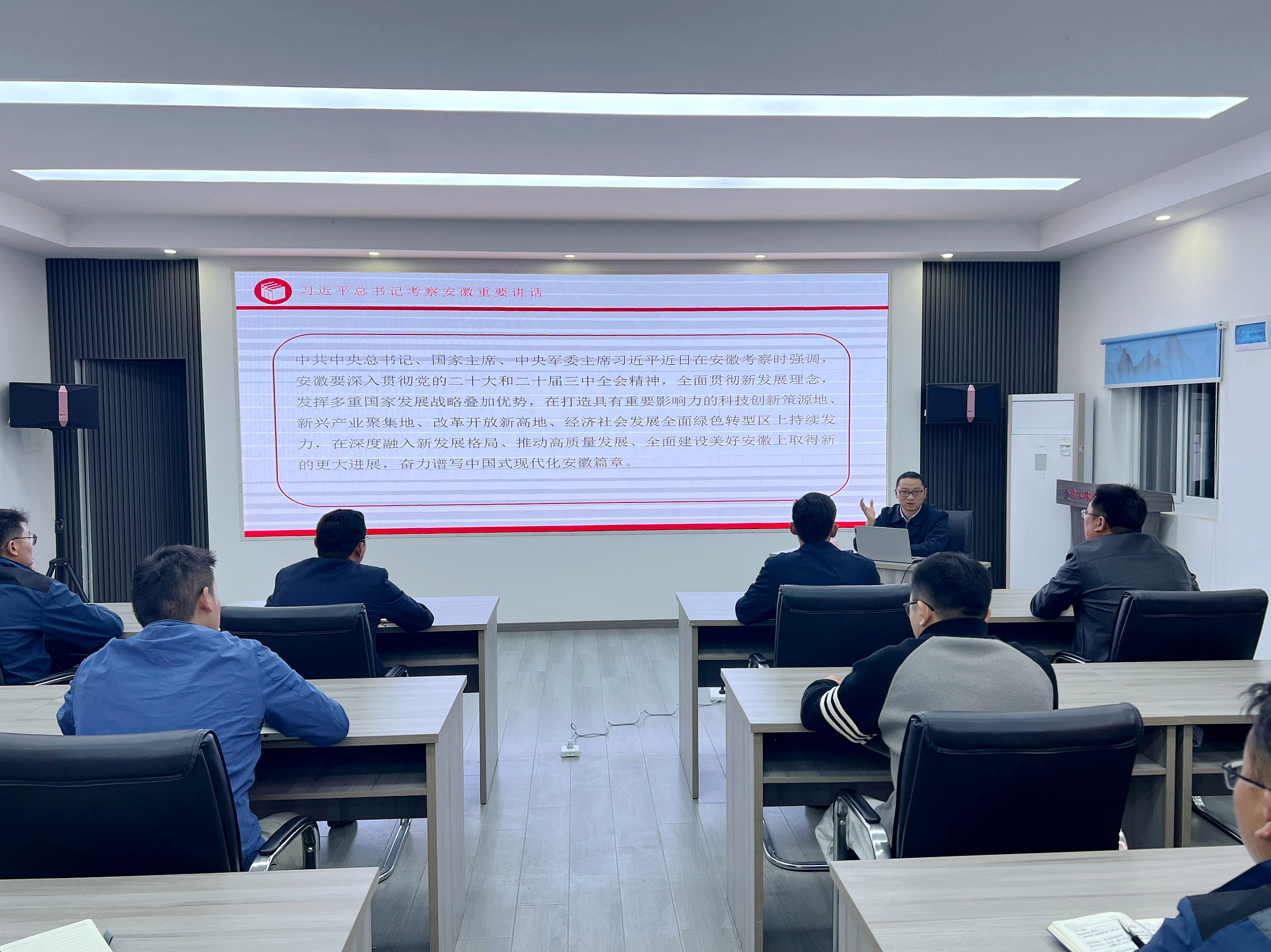 分公司、各項目領(lǐng)導(dǎo)班子成員通過黨課等多種形式宣講講話精神,并組織黨員干部圍繞貫徹落實工作開展專題研討。累計開展主題黨課5次、專題研討5次。將習(xí)近平總書記重要講話精神作為各支部“三會一課”重要學(xué)習(xí)內(nèi)容,組織黨員輪流領(lǐng)學(xué)、分享學(xué)習(xí)心得。開展“我與工友同學(xué)習(xí)”活動。黨員聯(lián)系員、志愿者深入施工一線,組織工友集中觀看習(xí)近平總書記考察安徽重要講話視頻,講話精神學(xué)習(xí)貫徹范圍進一步擴大。充分用好“國資e學(xué)”“學(xué)習(xí)強國”“共產(chǎn)黨員網(wǎng)”等平臺載體,在工作群、朋友圈及時轉(zhuǎn)發(fā)推送相關(guān)文章,實現(xiàn)線上線下同步發(fā)力,豐富學(xué)習(xí)內(nèi)容、拓展學(xué)習(xí)深度。