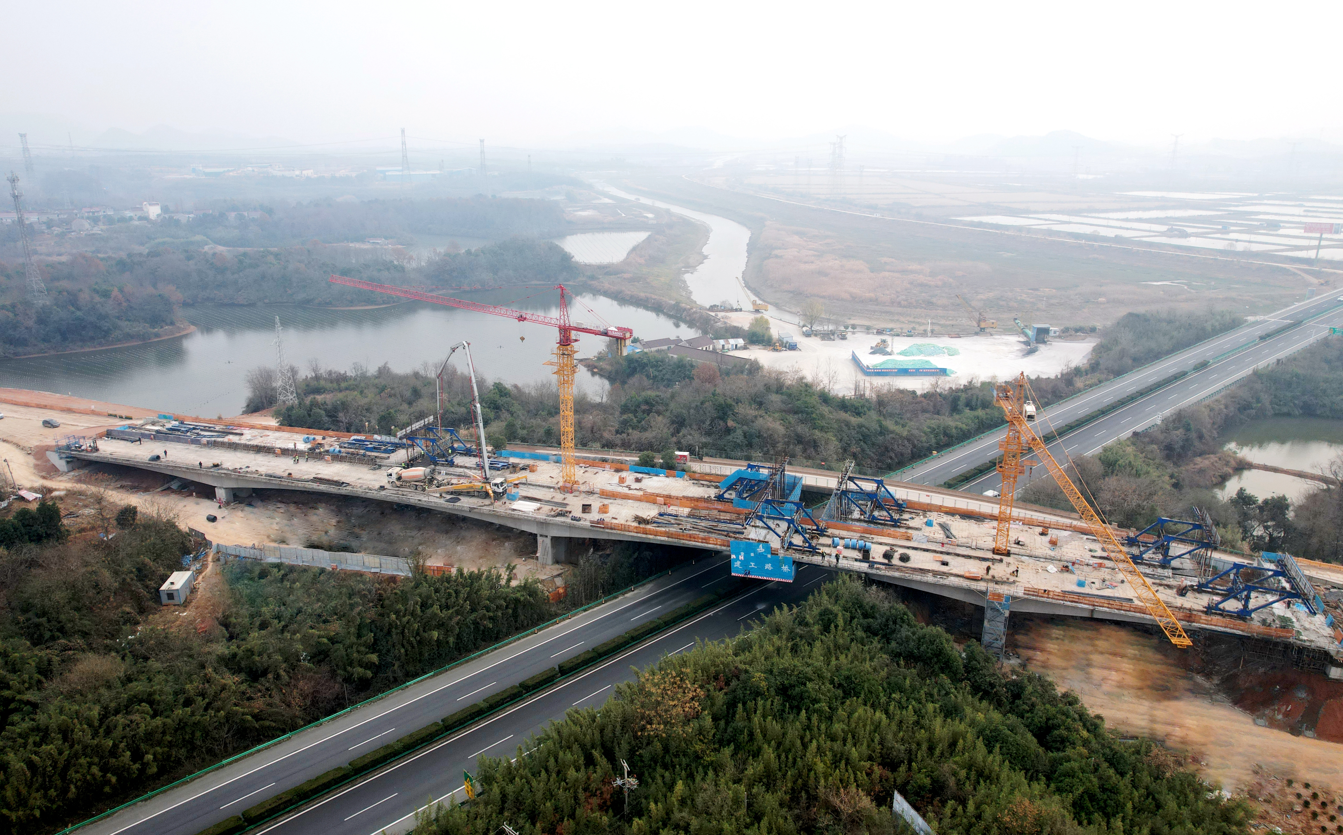 上跨G3京臺(tái)高速橋全長(zhǎng)227.5米,采用變截面連續(xù)梁結(jié)構(gòu)。連續(xù)梁上跨高速主干道,車(chē)流量大,組織協(xié)調(diào)難、安全風(fēng)險(xiǎn)高。項(xiàng)目?jī)?yōu)化完善施工方案,開(kāi)展培訓(xùn)和技術(shù)交底,同時(shí)對(duì)結(jié)構(gòu)線形進(jìn)行監(jiān)測(cè),強(qiáng)化過(guò)程管控,加快工序轉(zhuǎn)換,確保了合龍施工的順利進(jìn)行。