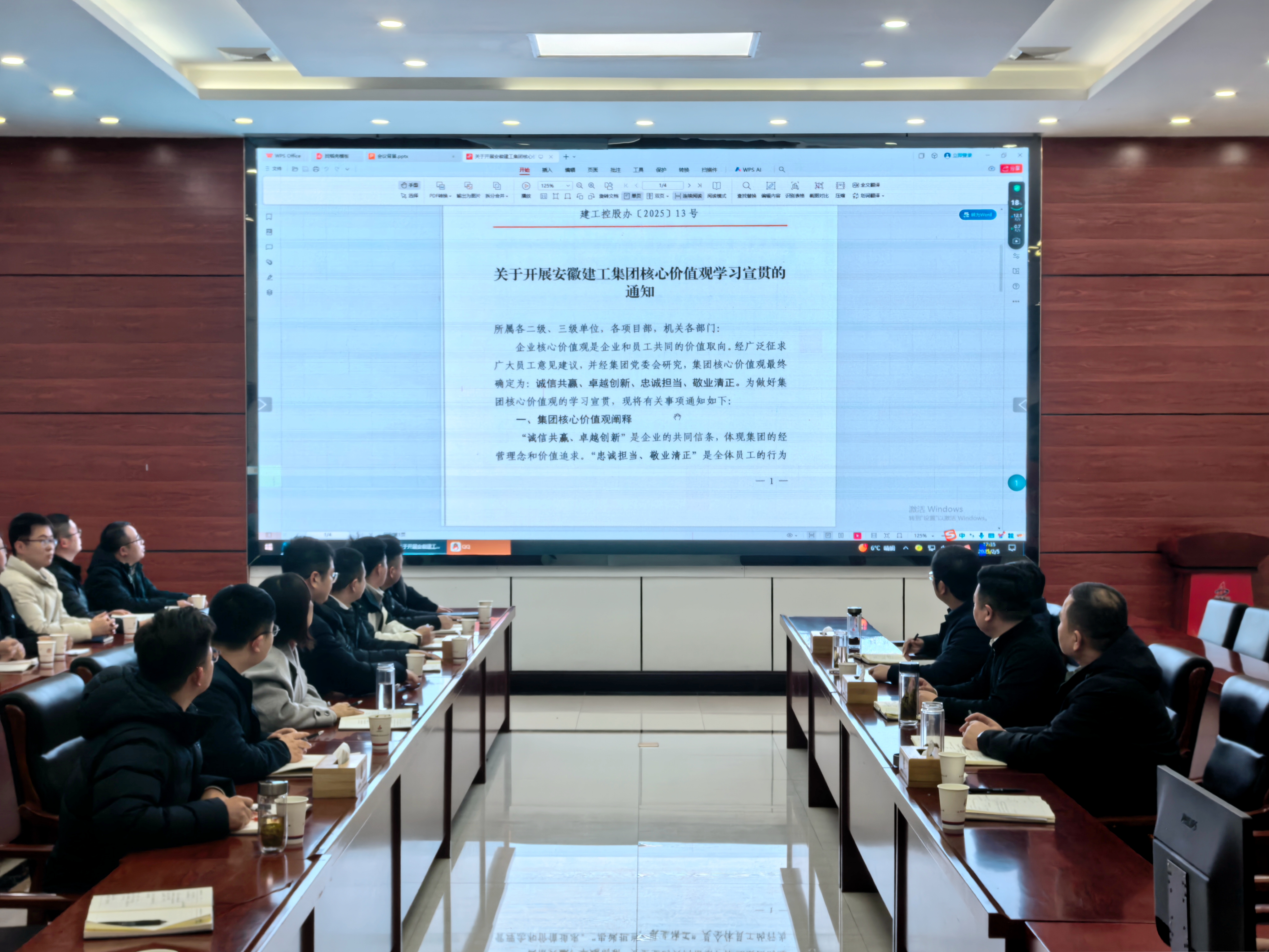 公司機關(guān)及時更新門廳、電梯間宣傳展板內(nèi)容,并第一時間組織干部職工學(xué)習(xí)集團核心價值觀內(nèi)容及闡釋。