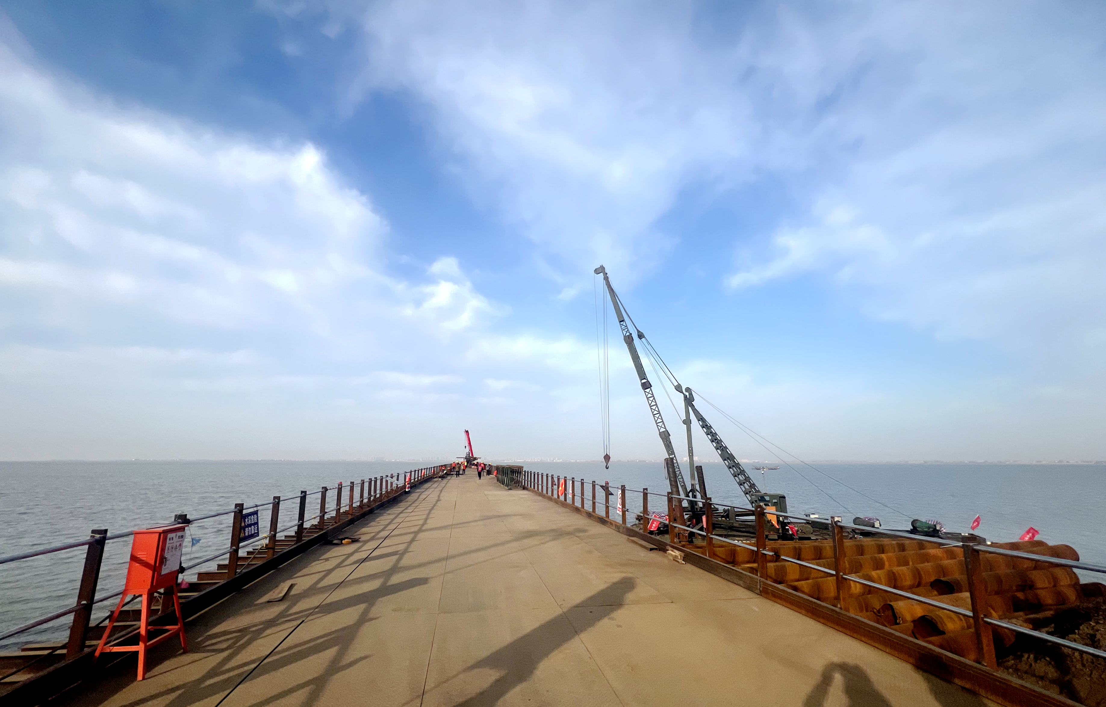 項目東西兩岸齊頭并進(jìn),推動城東湖特大橋鋼便橋施工,鋼筋加工廠、攪拌站等場站建設(shè)同步推進(jìn)。