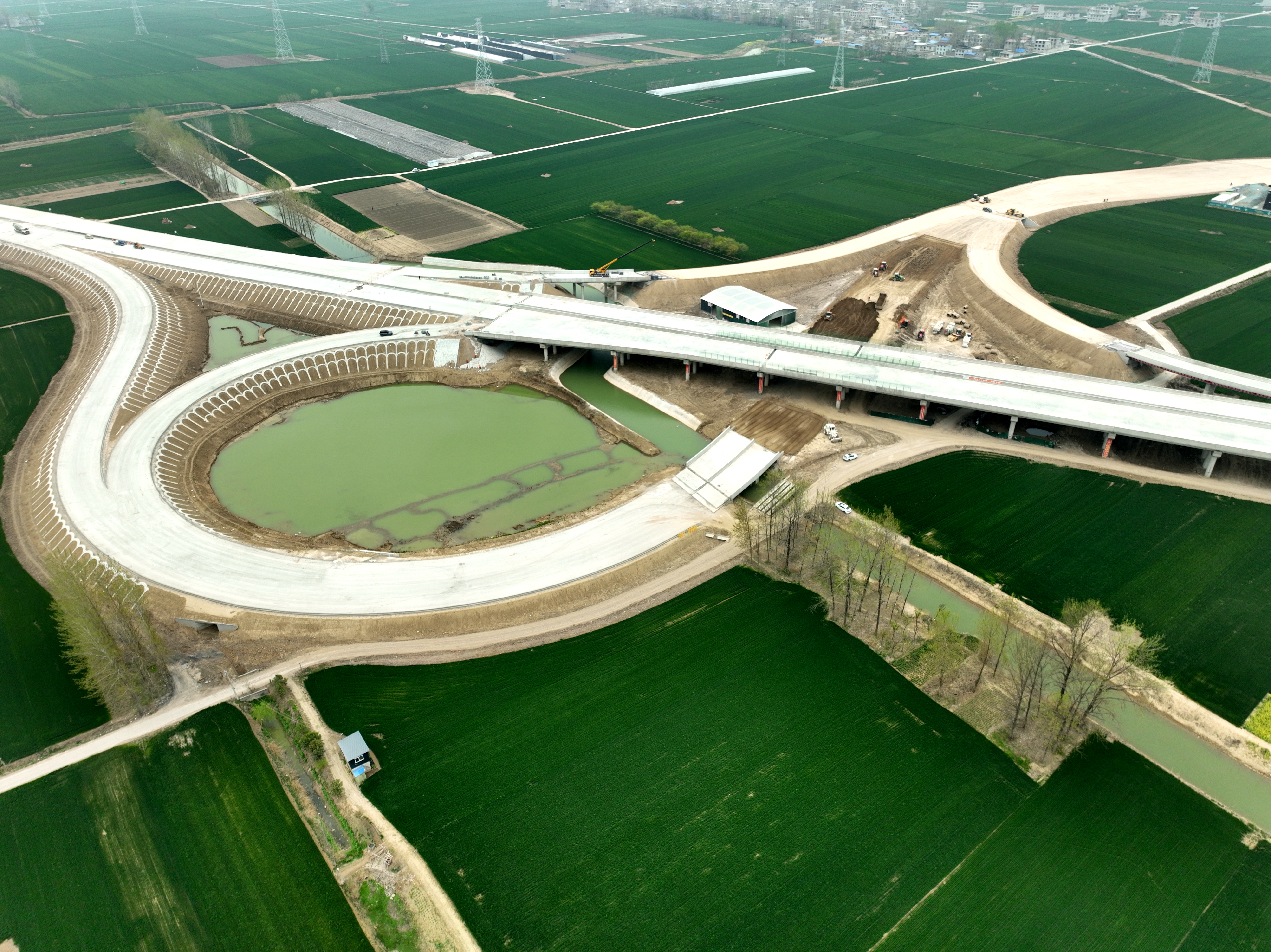 在徐淮阜高速亳州段,項(xiàng)目搶抓晴好天氣窗口期,克服改路改溝、土源緊張問題,全力鋪開作業(yè)面,陸續(xù)完成渦陽互通路基建設(shè)、交驗(yàn)工作,實(shí)現(xiàn)首座上跨天橋通車放行,力爭4月底完成項(xiàng)目主線路基交驗(yàn)及剩余車行天橋施工任務(wù)。