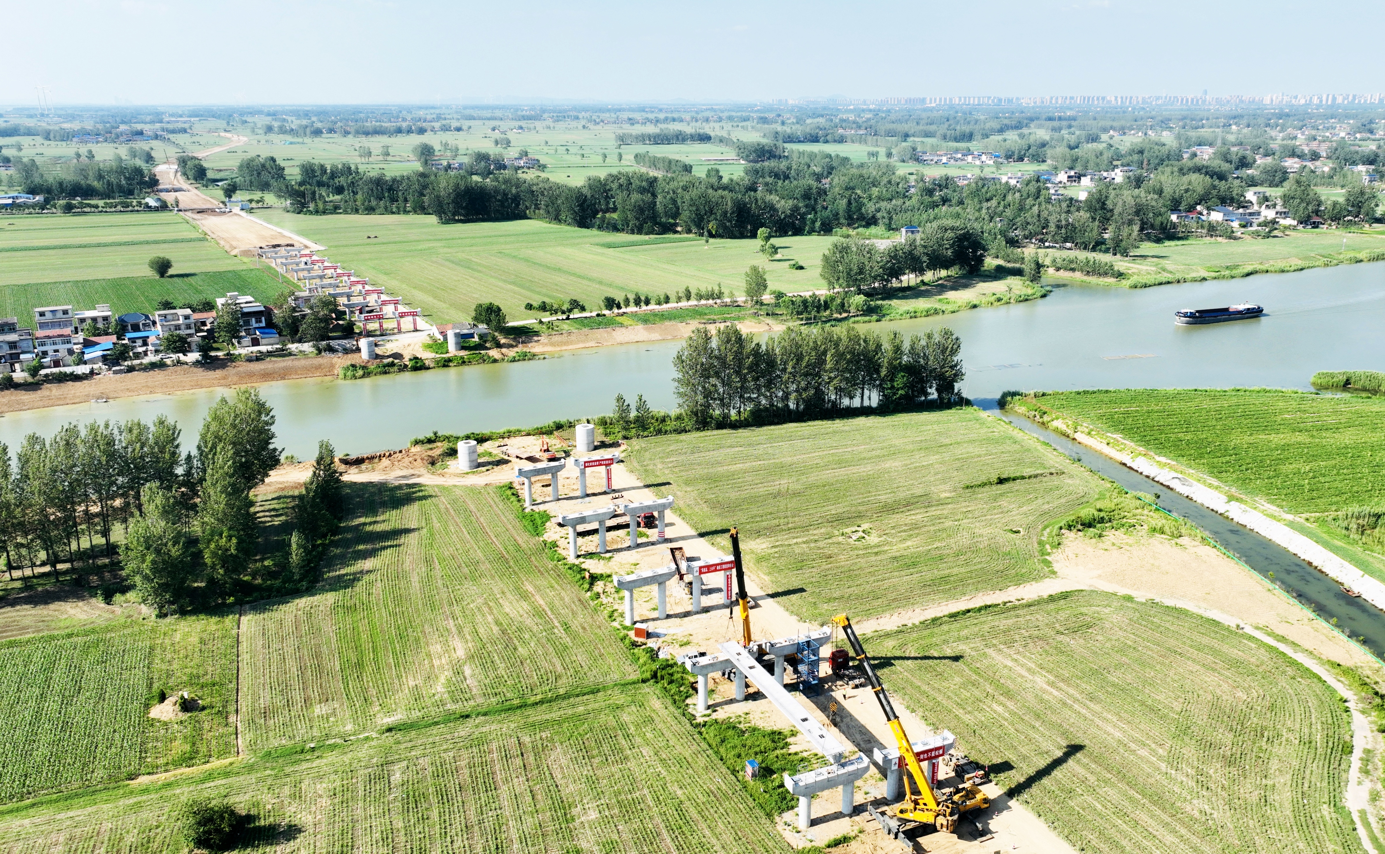 【路橋“競”行時(shí)】S235濉唐路三期項(xiàng)目澮河大橋首片箱梁架設(shè)完成