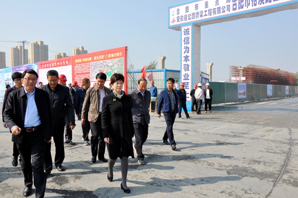 10月24日上午,合肥市委副書(shū)記、市長(zhǎng)凌云,副市長(zhǎng)寧波,市政府秘書(shū)長(zhǎng)朱策一行蒞臨公司裕溪路三標(biāo)項(xiàng)目調(diào)研指導(dǎo)工作。公司董事長(zhǎng)、黨委書(shū)記、總經(jīng)理孫學(xué)軍,副總經(jīng)理任杰陪同。