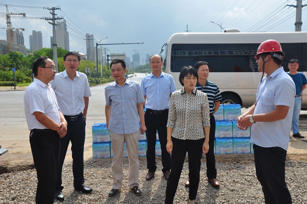 8月9日上午,蕪湖縣委副書(shū)記、縣長(zhǎng)韋秀芳一行到S354青弋江橋項(xiàng)目開(kāi)展“送清涼”慰問(wèn)活動(dòng),縣交通運(yùn)輸局局長(zhǎng)許小兵等陪同。