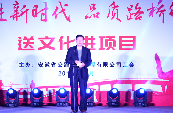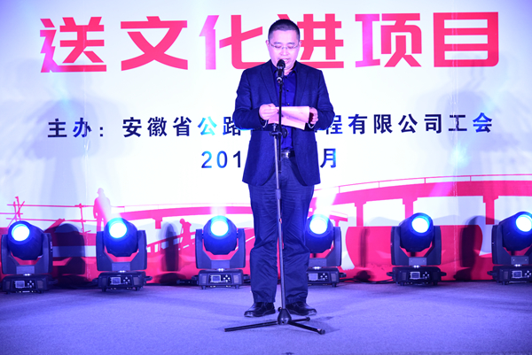 省建設(shè)建材工會(huì)主任程德旺應(yīng)邀致辭,他表示本次送文化進(jìn)項(xiàng)目,把職工喜聞樂(lè)見(jiàn)的文化形式送到一線,營(yíng)造健康向上的文化氛圍,增強(qiáng)了企業(yè)的凝聚力和向心力。希望省路橋公司廣大建設(shè)者再接再厲,把干事創(chuàng)業(yè)的熱情貫穿企業(yè)高質(zhì)量發(fā)展全過(guò)程,為安徽省建筑業(yè)的發(fā)展作出更大貢獻(xiàn)。
