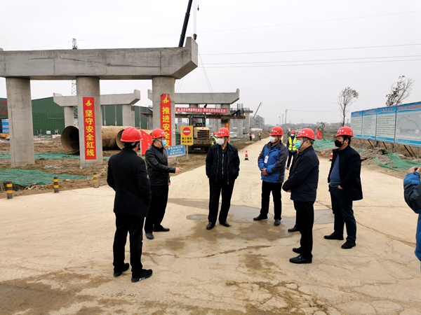 在施工現(xiàn)場,許克順仔細詢問了疫情防控和復工復產(chǎn)進展情況,并實地察看了各項措施落實情況。對項目在防疫關(guān)鍵時期克服人材機資源短缺困難,準確定位、提前謀劃、科學組織,迅速打開復工建設局面給予了充分肯定。許克順強調(diào),一定要調(diào)動一切力量,克服一切困難,扎實行動,確保防疫和復工兩手抓兩手硬,堅持以人為本,積極安全有序推進工程建設,掀起大干快上的復工場面。