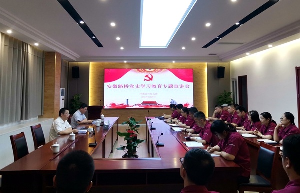 會上, 錢申春通報了公司黨史學習教育開展情況,并圍繞“學習黨的百年歷史,傳承發(fā)揚奮斗精神”“深刻認識公司改革發(fā)展歷程及近年來取得的主要成績,切實增強品質(zhì)路橋卓越路橋建設的信心決心”“扎實推進黨史學習教育,為公司“十四五”發(fā)展凝聚強大力量”三個方面作了宣講。