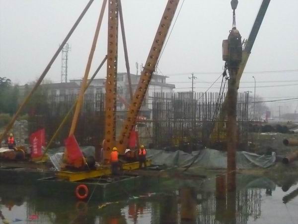在年前完成1#橋墩承臺(tái)施工和2#橋墩鋼板樁圍堰施工后,新年伊始,宋斗灣項(xiàng)目部以最快的速度克服“春節(jié)綜合癥”,進(jìn)入復(fù)工狀態(tài)。經(jīng)過二十來天的施工,宋斗灣路工程已經(jīng)完成墩柱施工以及浮吊組裝。