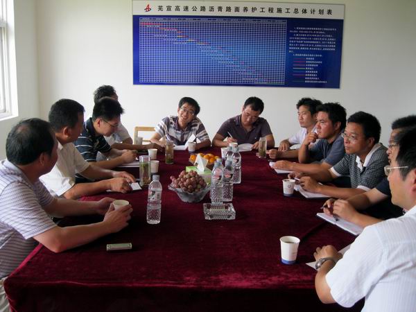結(jié)束了對(duì)前后場(chǎng)的現(xiàn)場(chǎng)視察后,曹部長(zhǎng)一行在項(xiàng)目部會(huì)議室召開(kāi)了工作座談會(huì)議。會(huì)上交投集團(tuán)養(yǎng)護(hù)部曹部長(zhǎng)、界阜蚌改建辦張主任、蕪宣管理處養(yǎng)護(hù)部張部長(zhǎng)、駐地辦劉組長(zhǎng)作為代表分別就目前施工中質(zhì)量控制的要點(diǎn)以及施工工序中需注意的幾個(gè)方面做了發(fā)言,并就此進(jìn)行了深入的交流與探討。