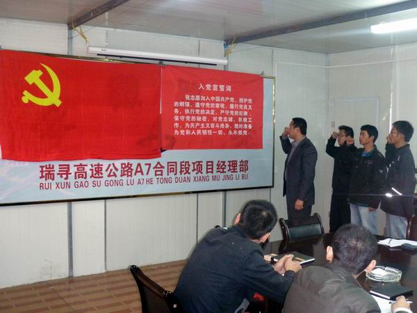 會(huì)議第三項(xiàng)議程是由項(xiàng)目經(jīng)理劉大雷結(jié)合項(xiàng)目辦第二階段目標(biāo)提出了我標(biāo)段黨支部在下一階段中的任務(wù)和目標(biāo)要求。劉經(jīng)理指出,在下一階段,黨支部要緊緊圍繞項(xiàng)目辦第二階段目標(biāo),深入一線,提高黨員的政治覺(jué)悟,起到模范帶頭作用,以“嚴(yán)要求、高標(biāo)準(zhǔn)”樹(shù)立黨員風(fēng)范,促進(jìn)施工生產(chǎn)。