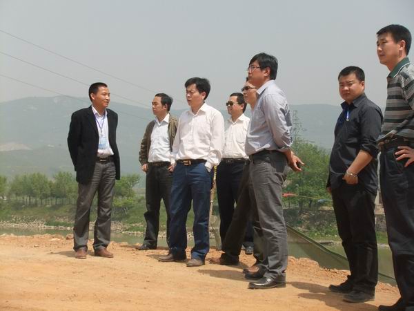 何局長首先來到我部北山河大橋施工現(xiàn)場,觀看主橋11#墩部位插板樁完成后的主墩承臺(tái)開挖情況及引橋樁基的施工情況。在聽完項(xiàng)目經(jīng)理冷峰對當(dāng)前大橋施工的系統(tǒng)介紹后,何局長對我部大橋施工的質(zhì)量控制及安全管理提出了具體要求。