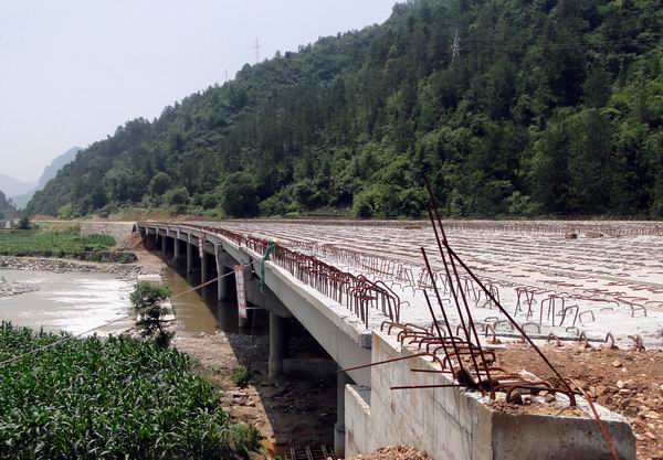 馬家河1號橋為該標段采用吊車架設的第一座橋,該橋的貫通極大的鼓舞了項目部的士氣。