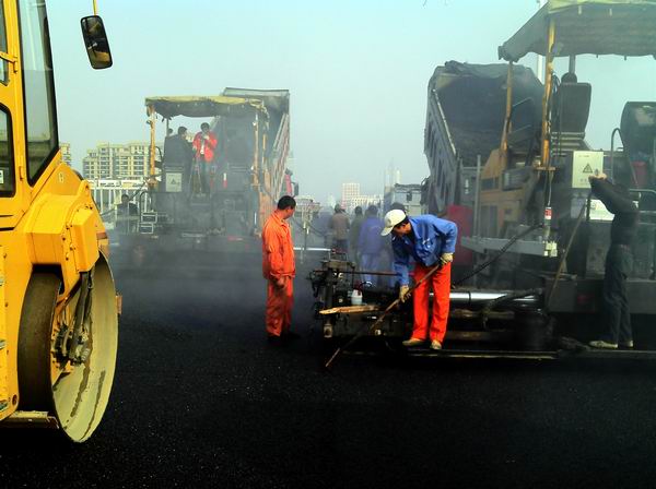 合作化南路高架Ⅰ標(biāo)橋面瀝青攤鋪全部結(jié)束