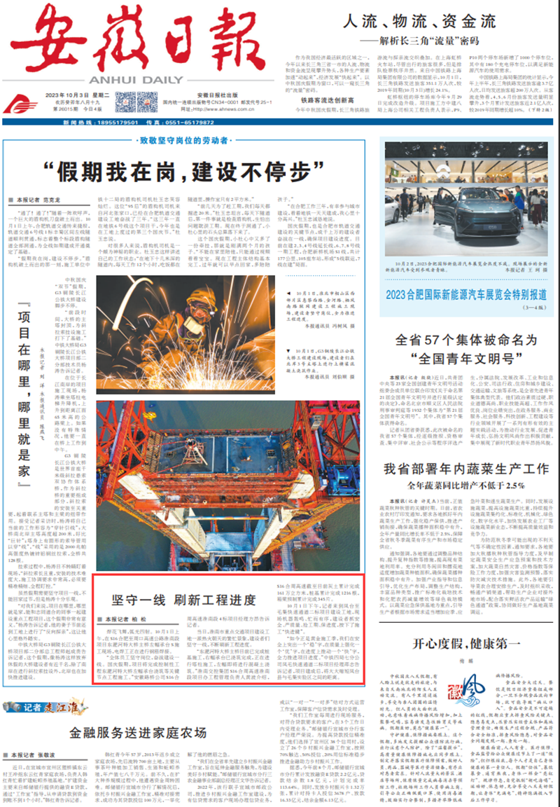 【名媒聚焦】學(xué)習(xí)強國、安徽日報等多家省市級主流媒體聚焦公司兩節(jié)期間項目建設(shè)情況