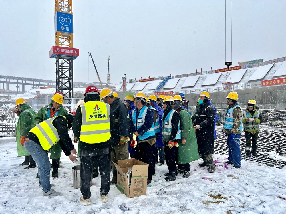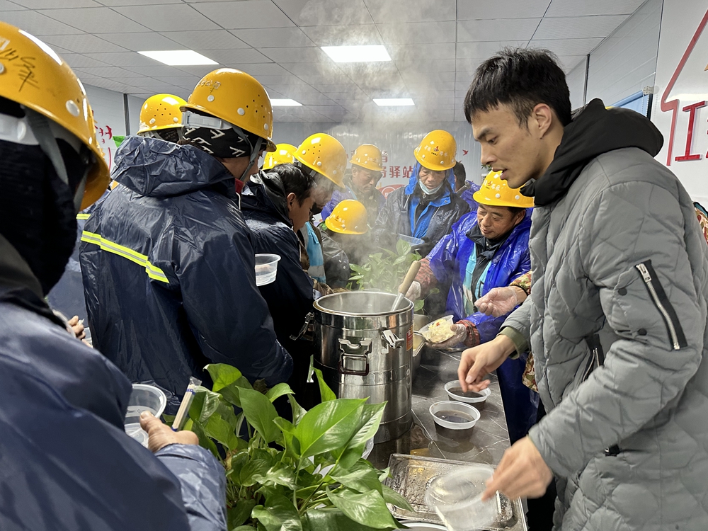 伴隨著寒潮來襲,為積極應(yīng)對降雪和斷崖式降溫天氣,確保全體建設(shè)者溫暖過冬,近日,公司各項目精心打好冬季送溫暖“組合拳”,為一線建設(shè)者們及時發(fā)放防寒服、棉鞋和手套等防寒防滑物品,在寒風中為他們送去姜湯、熱水,在深夜里準備好熱湯、熱飯......用濃濃的“家文化”驅(qū)散寒冷,讓建設(shè)者們在冬日里暖身又暖心,為全面沖刺年度目標任務(wù)保駕護航。
