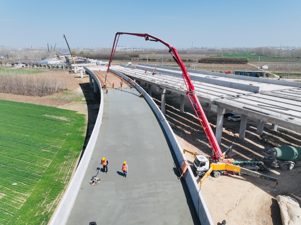 “施工過程中,我們嚴(yán)把原材料質(zhì)量、橋面清理、鋼筋網(wǎng)片鋪設(shè)、混凝土澆筑等各道工序,攤鋪后對混凝土表面進(jìn)行二次收面,及時(shí)覆蓋土工布并進(jìn)行灑水養(yǎng)生,使橋面達(dá)到內(nèi)實(shí)外美效果。”周邵鵬說,全線橋面鋪裝總計(jì)88聯(lián),橋面鋪裝首件工程的順利澆筑,為后續(xù)橋面施工提供了技術(shù)支撐,截至3月底已累計(jì)完成10跨。