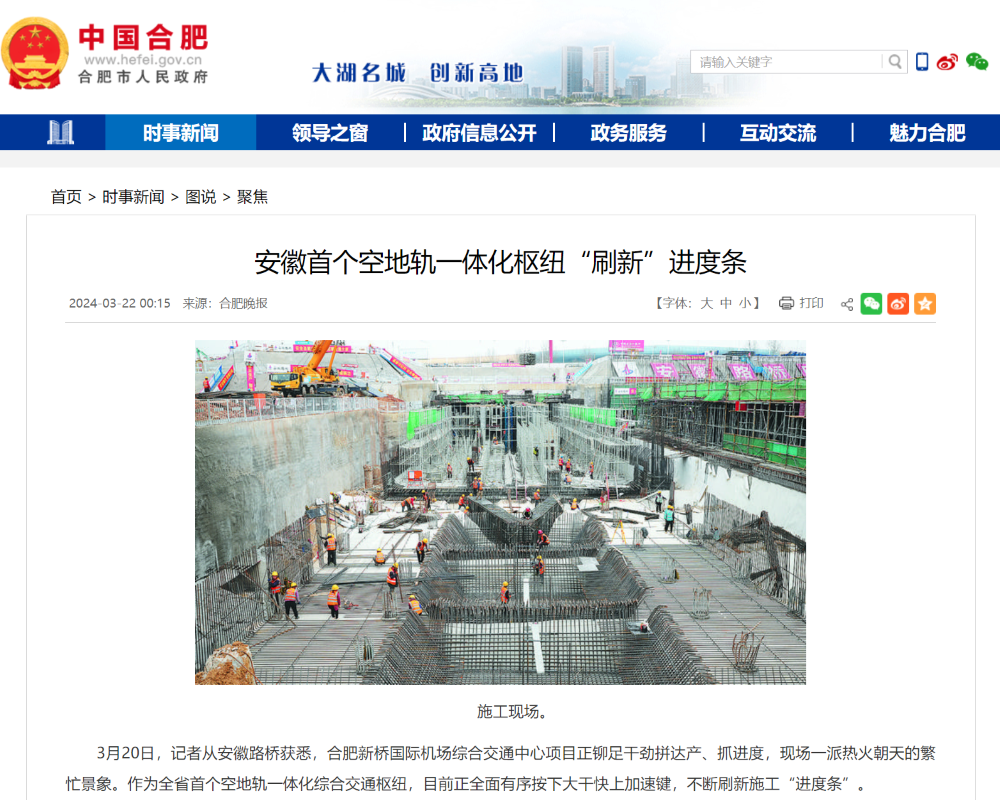 【名媒聚焦】多家主流媒體持續(xù)關(guān)注合肥新橋國(guó)際機(jī)場(chǎng)綜合交通中心項(xiàng)目建設(shè)