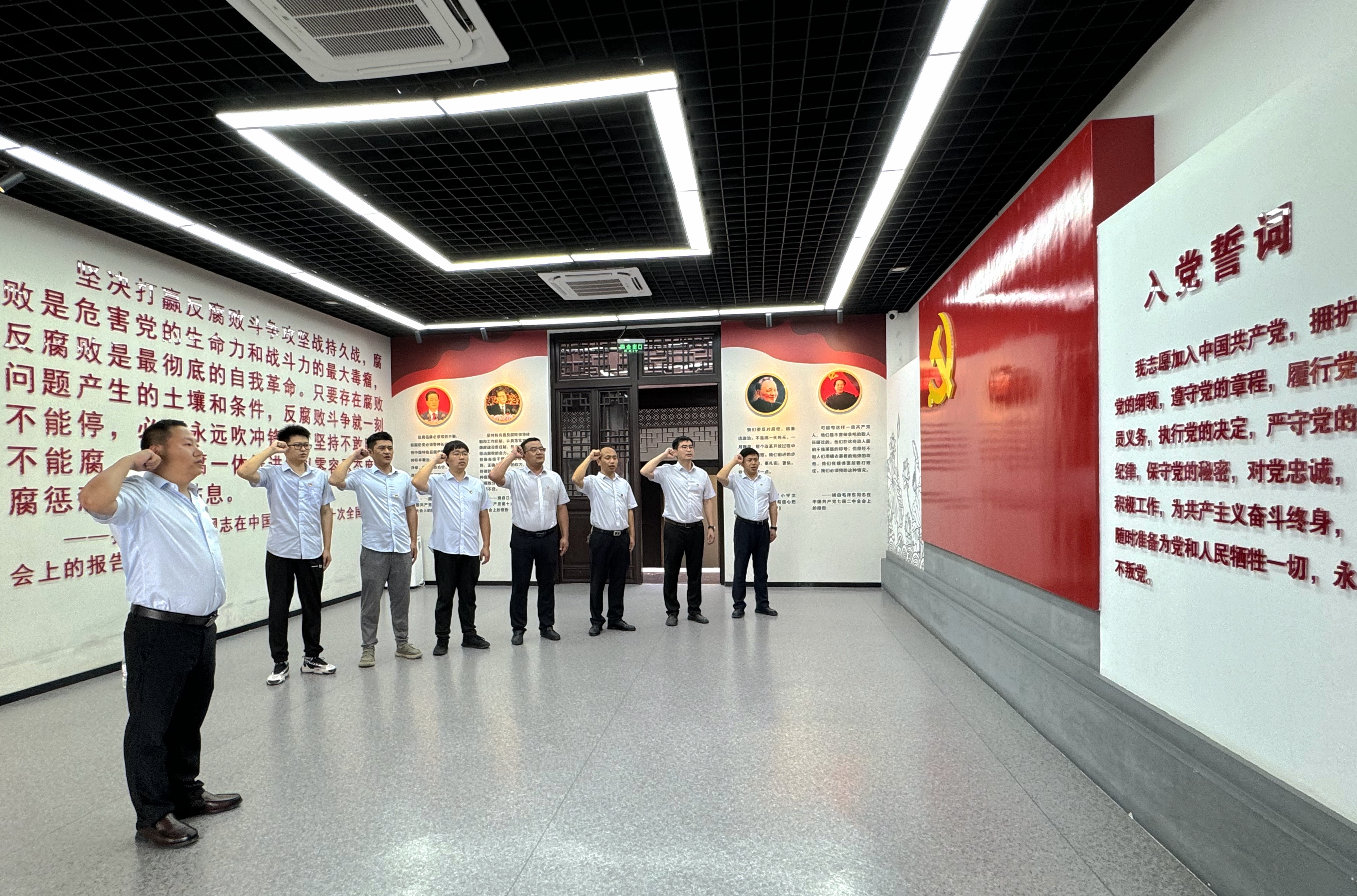 6月26日,涇青高速04標項目黨支部與路面專業(yè)化服務(wù)中心黨支部前往歙縣廉政三示教育基地,聯(lián)合開展“聯(lián)學(xué)共建謀發(fā)展,勠力同心建新功”主題黨日活動,在講解人員引導(dǎo)下參觀展館,并重溫入黨誓詞。