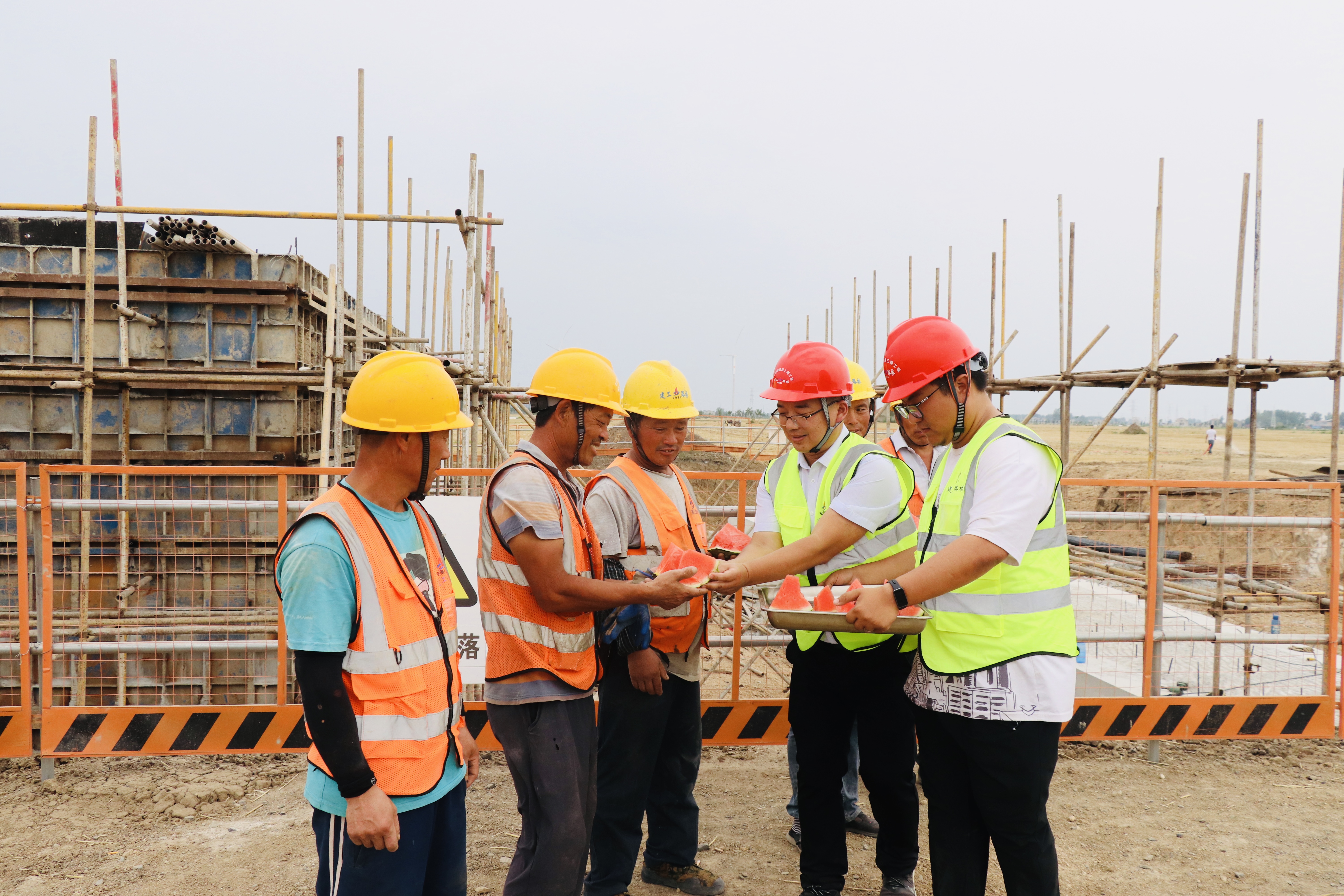 “自5月份開(kāi)始,項(xiàng)目就陸續(xù)開(kāi)展防暑降溫措施培訓(xùn)和中暑應(yīng)急救援演練,提前為各勞務(wù)隊(duì)伍配備充足的防暑降溫藥品,并在每日安全巡查時(shí)為一線工人發(fā)放西瓜、礦泉水、綠豆湯等一系列防暑降溫用品,時(shí)刻關(guān)注工人身體狀況,全力確保高溫下施工安全與效率?!表?xiàng)目安全環(huán)保部部長(zhǎng)方巖說(shuō)。