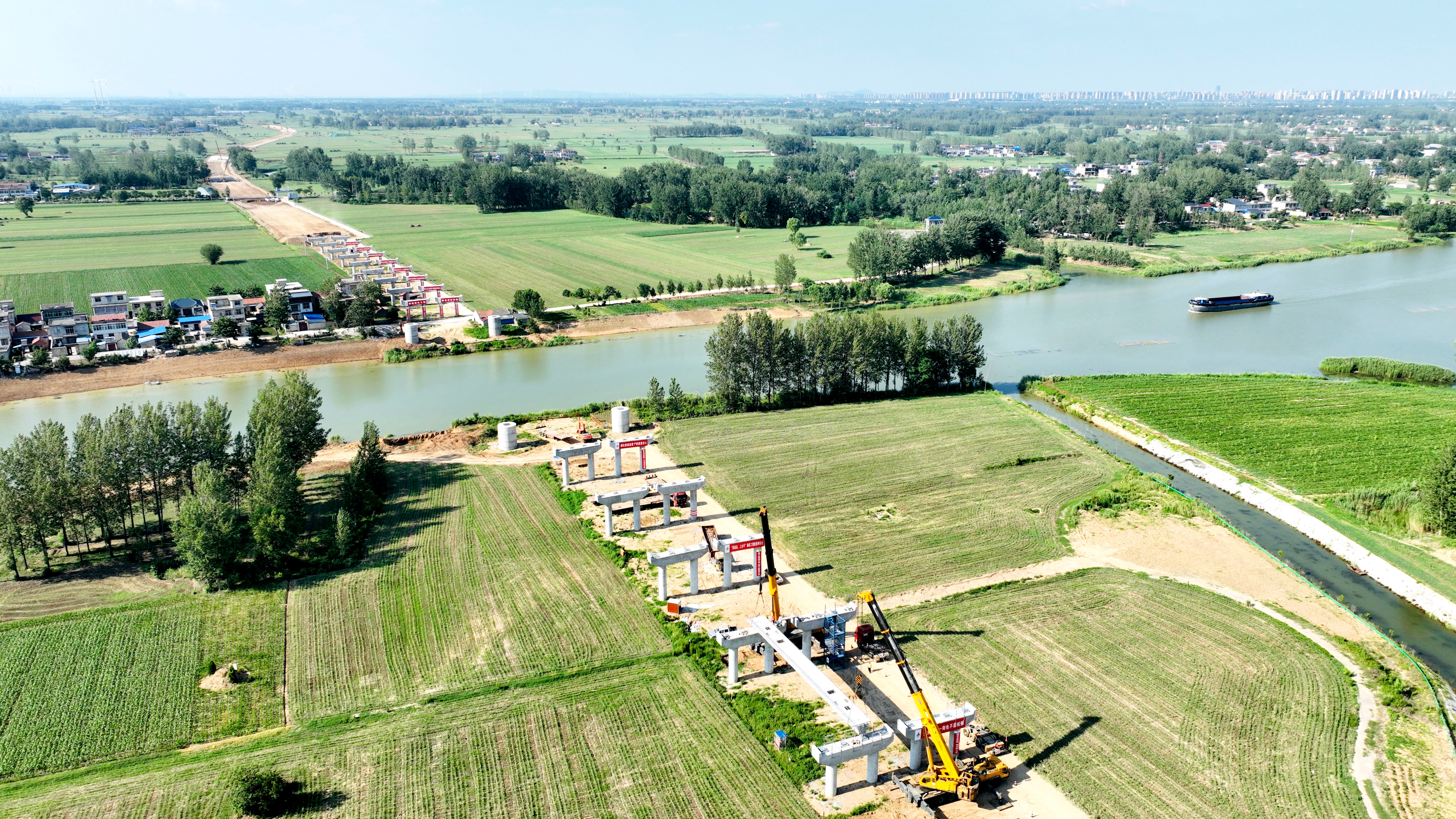6月份以來(lái),項(xiàng)目先后完成K37+593黃家橋、K31+575穆家橋梁板架設(shè)任務(wù),項(xiàng)目重點(diǎn)控制性工程澮河大橋在7月5日完成首片箱梁架設(shè)節(jié)點(diǎn)目標(biāo),正全力加快推進(jìn)路基填筑、鋼箱梁加工及梁板預(yù)制進(jìn)度,即將在7月中旬完成全線首段路基96頂交驗(yàn),為后續(xù)水穩(wěn)試驗(yàn)段攤鋪奠定堅(jiān)實(shí)基礎(chǔ)。