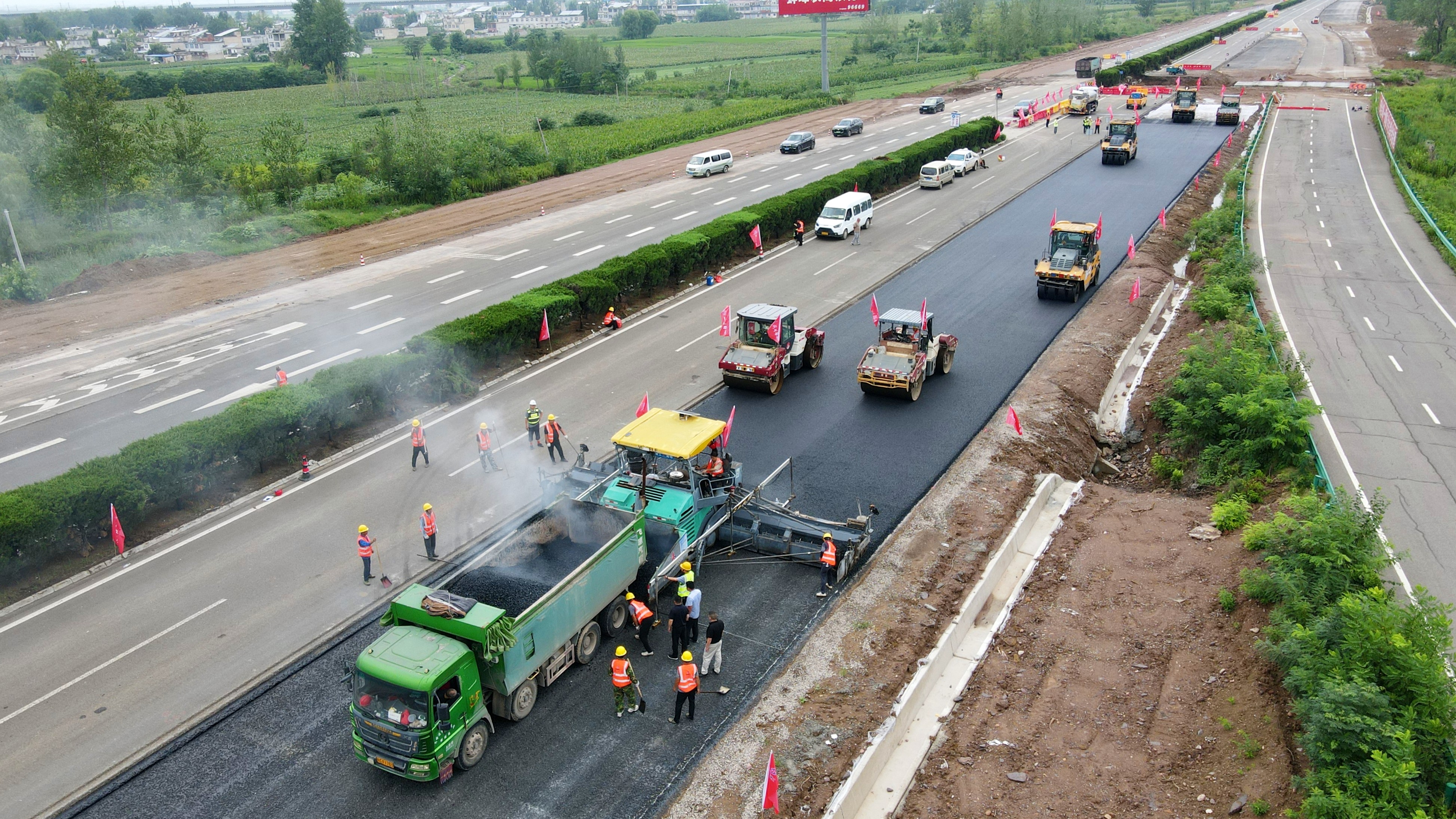 【路橋“競(jìng)”行時(shí)】G3京臺(tái)高速改擴(kuò)建項(xiàng)目瀝青ATB上基層試驗(yàn)段鋪設(shè)完成