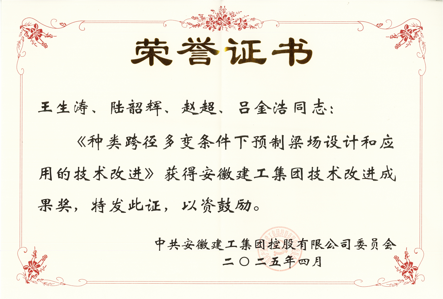 在預制梁施工中,項目涉及8種不同跨徑的箱梁生產。按照傳統(tǒng)工藝,需對應建設8種專用臺座,不僅占用大量場地,還需投入額外成本,且臺座僅能適配單一跨徑箱梁,資源利用率極低。項目部技術團隊通過對比不同跨徑箱梁的結構參數、受力特點,最終確定建設25米、40米兩種通用臺座。通過靈活調整模板支撐結構、優(yōu)化鋼筋綁扎流程,使兩種臺座可完全適配8種跨徑箱梁的預制需求。此舉減少了6種專用臺座的建設投入,還節(jié)省施工用地約9.8畝,縮短工期15天,相關技術成果《種類跨徑多變條件下預制梁場設計和應用的技術改進》還榮獲集團技術改進獎及安徽省重大合理化建議獎。
