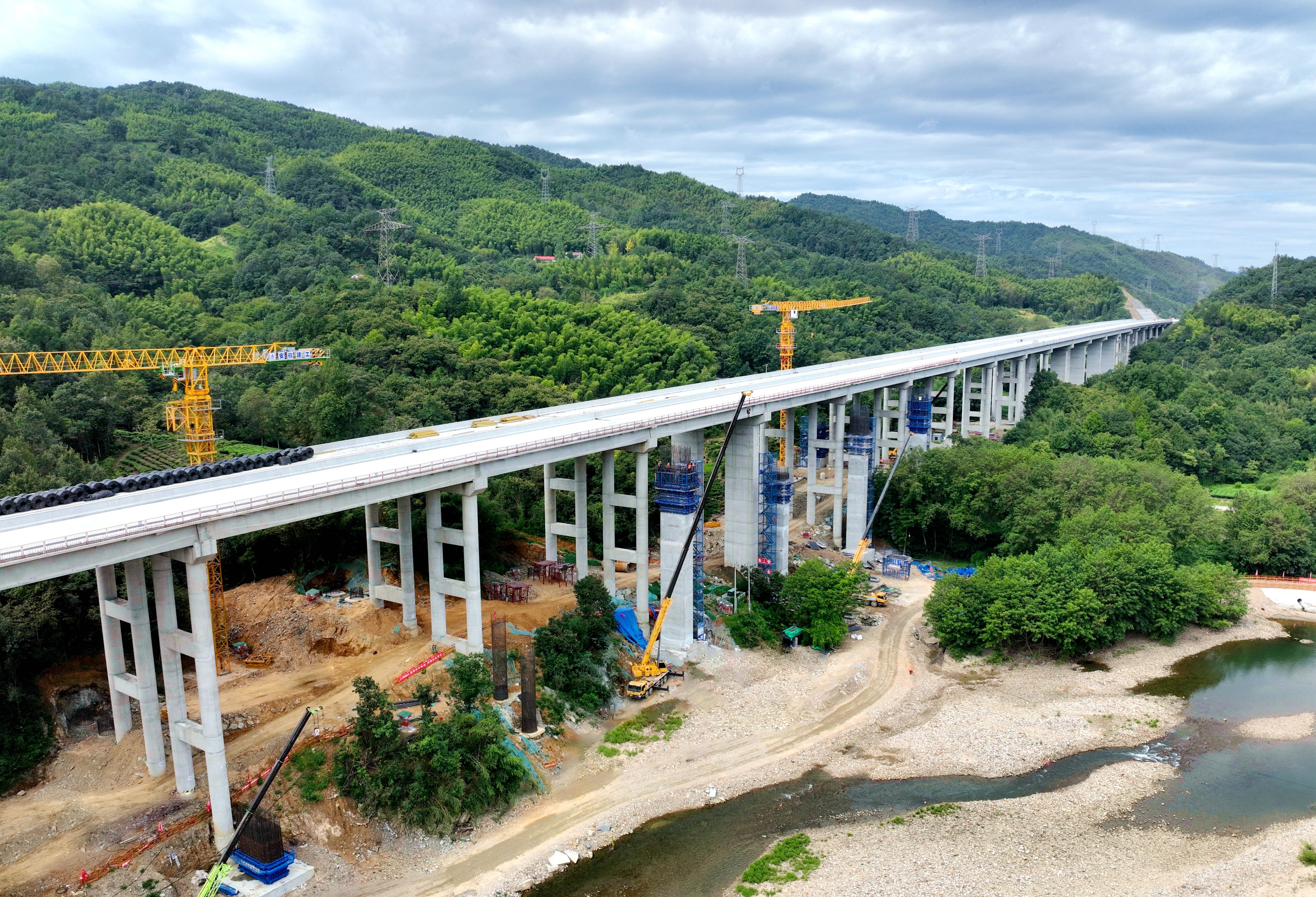 青山樞紐是項(xiàng)目起點(diǎn),與在建的和襄高速(六安段)連接,肩負(fù)著兩條高速“牽手”的使命。新建樞紐由5座匝道橋和1座拼寬橋組成,均為高墩柱、大跨徑橋梁,其中A、C兩條匝道需要對(duì)和襄高速十里溪大橋拼寬施工。項(xiàng)目技術(shù)負(fù)責(zé)人孫維龍告訴記者,“和襄高速預(yù)計(jì)2025年底實(shí)現(xiàn)全線通車,該樞紐也要在年底前完成橋梁主體結(jié)構(gòu)施工”。