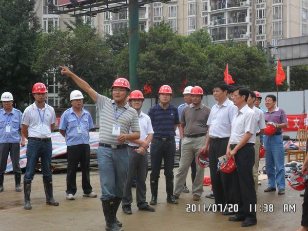 項目經(jīng)理李建成詳細介紹了我標段施工情況,重點介紹了省內(nèi)首次采用的地下連續(xù)墻施工方法。站在地下連續(xù)墻大型施工機械前的代表團成員們仔細的聽、不停的點頭稱贊,并不時的詢問連續(xù)墻施工的相關(guān)情況。對代表團的詢問李經(jīng)理一一給予滿意的回答。