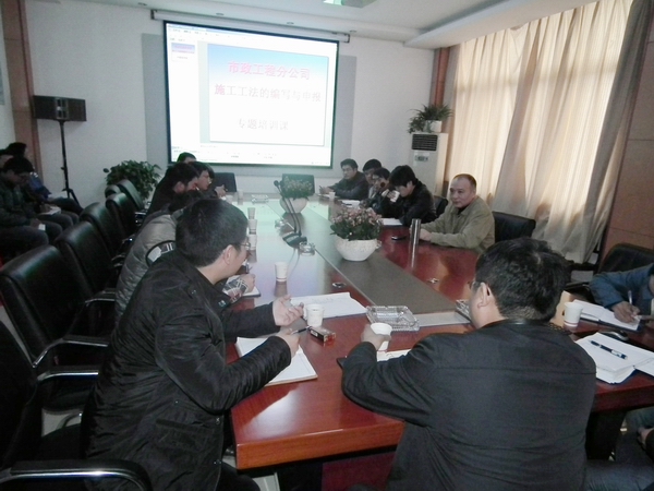 1121下午3:00,市政工程分公司在阜陽北路高架工程2標舉辦施工工法編制與申報專題培訓課,公司副總經(jīng)理、總工程師彭申凱,分公司領(lǐng)導班子、各項目總工、工程部負責人和部分技術(shù)人員等20多人參加培訓,培訓由總師辦崔健主講。