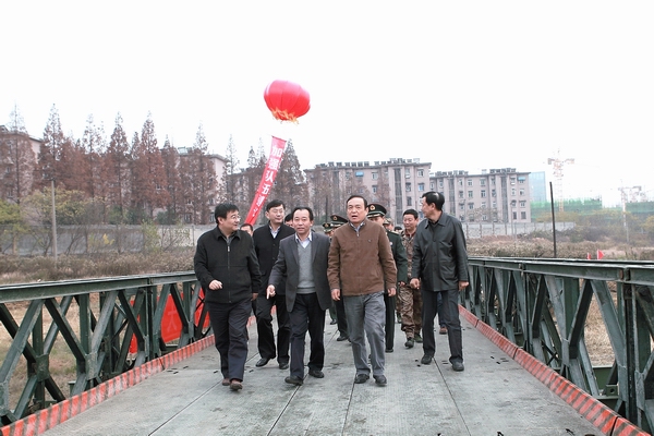 為貫徹交通戰(zhàn)備工作“平時服務(wù)、急時應(yīng)急、戰(zhàn)時應(yīng)戰(zhàn)”總要求,根據(jù)省交通戰(zhàn)備辦公室2012年交通戰(zhàn)備工作安排,11月30日由集團公司交戰(zhàn)辦組織安徽省公路工程保障大隊在合肥警備區(qū)教導隊訓練場進行 “321“戰(zhàn)備鋼橋架設(shè)演示。公司承辦了此次演示活動。此次演示也是全省交通戰(zhàn)備工作會議的一項內(nèi)容。南京軍區(qū)交戰(zhàn)辦副主任、軍區(qū)聯(lián)勤部、軍交運輸部副部長王鐵,省交戰(zhàn)辦主任、交通運輸廳廳長梅勁,省交戰(zhàn)辦常務(wù)副主任、交通運輸廳副廳長羅寧等領(lǐng)導出席了觀摩活動。省國動委“八辦”專職副主任,省交通運輸廳機關(guān)各處室負責人,各市交戰(zhàn)辦負責人,省高速控股集團,交投集團和建工集團分管領(lǐng)導也參加了觀摩指導。