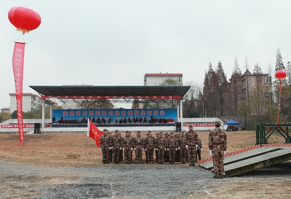下午,在合肥警備區(qū)教導隊訓練場,紅旗招展,彩球飄揚。公司從各單位、各項目抽調(diào)的50名隊員經(jīng)過為期一周的軍事化訓練,精神抖擻、整裝待發(fā)。15:00時,演示活動正式開始。隨著梅廳長一聲令下,隊員們高舉“安徽省公路工程保障大隊”旗幟,齊喊口號,跑步進入現(xiàn)場,開始架設(shè)。在架設(shè)的同時,進行了現(xiàn)場同期聲解說。短短30分鐘內(nèi),隊員們分工明確,技術(shù)熟練,配合默契。在沒有機械設(shè)備的情況下,依靠人工肩扛手抬,迅速完成了桁架、橋面板等搭設(shè),將鋼橋推過河,隨后三輛炮車緩緩通過,進行裝備通載檢驗。至此,戰(zhàn)備鋼橋架設(shè)演示圓滿完成。演示活動結(jié)束后,領(lǐng)導們上橋檢閱,親切地接見、慰問了參演隊員,并合影留戀。